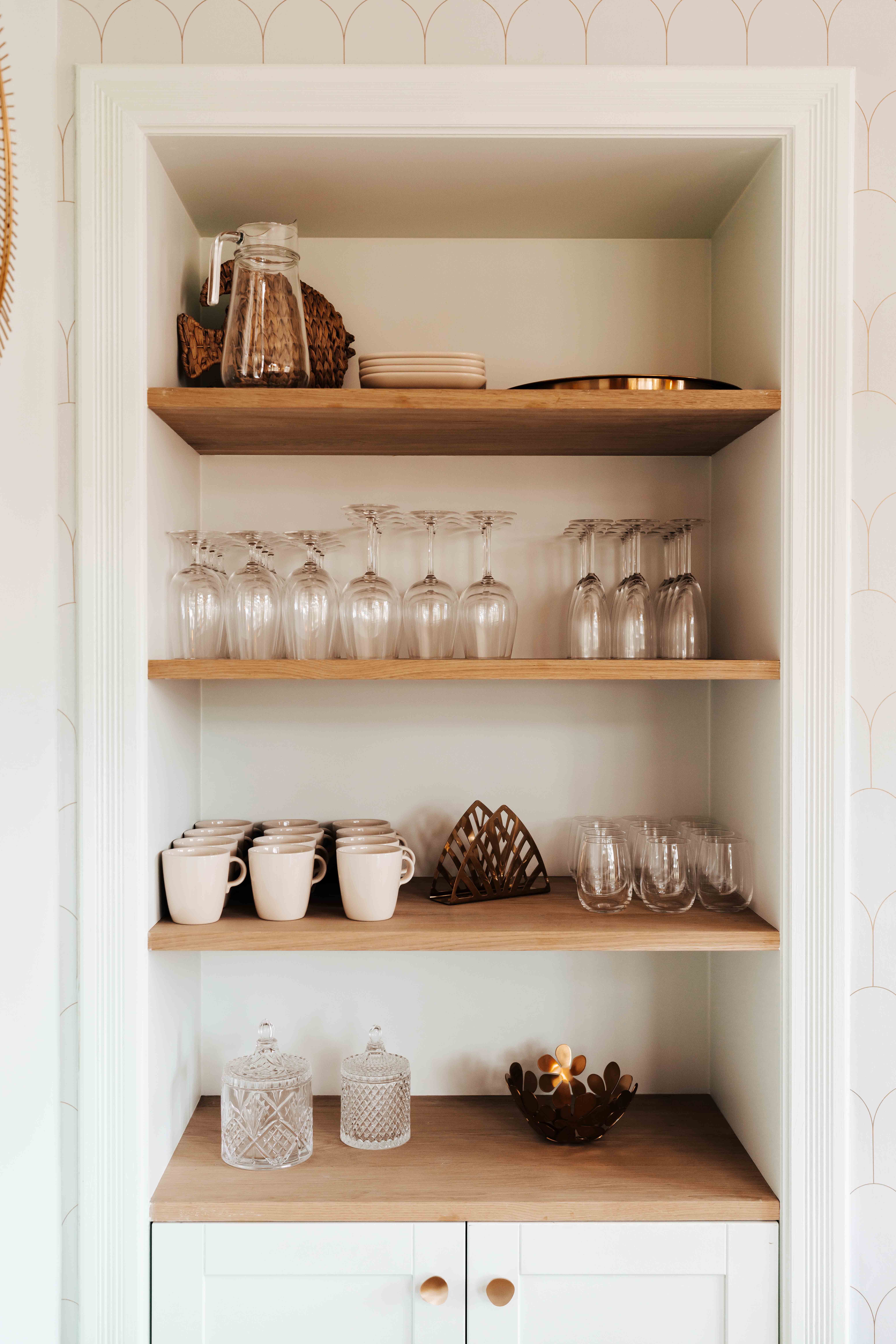 De keuken straalt pure charme uit en vormt het kloppend hart van het huis. De serene sfeer ontstaat door een palet van Muntwit, Ivoorwit en Sisalbeige, verfijnd met een toets Schaduwgrijs. Deze harmonieuze combinatie brengt frisheid, warmte en elegantie in balans. Hou je van een warme uitstraling, ga dan voor zulke zachte tinten en natuurlijke accenten. Zo laat je je ruimte meer uitnodigend voelen.
