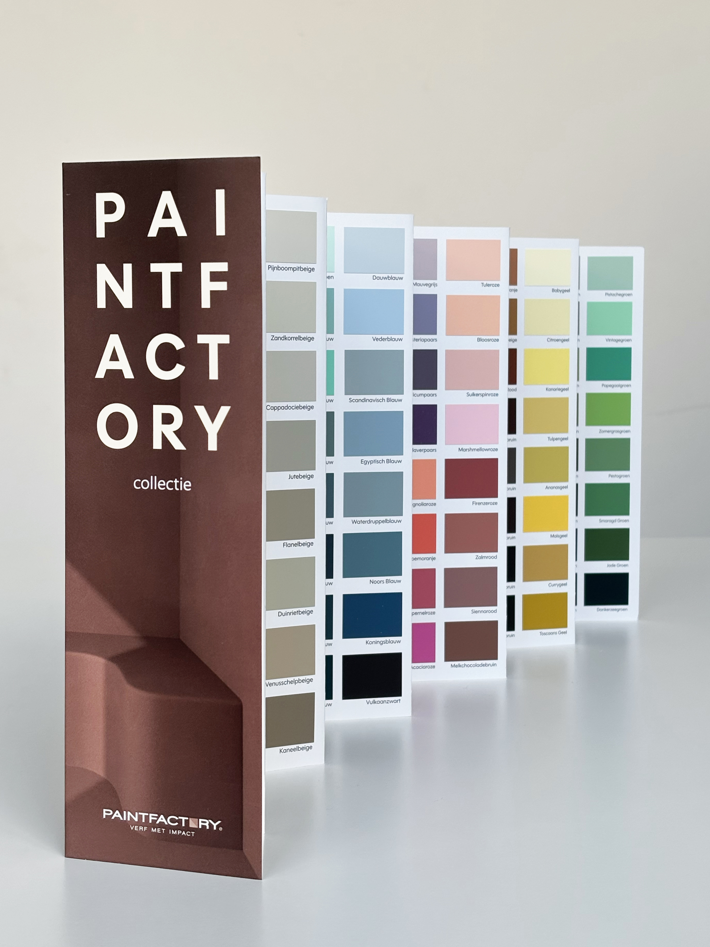 De nieuwe Paintfactory kleurenwaaier ligt vanaf nu in onze winkels. Kom langs, blader door het vernieuwde palet en laat je inspireren door 40 splinternieuwe tinten - zorgvuldig samengesteld om jouw interieur nóg meer karakter en warmte te geven.