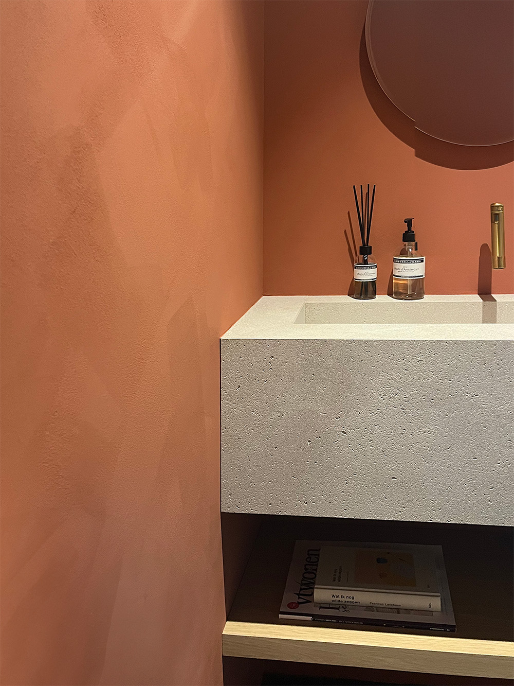 Terra is ideaal voor wie een muurafwerking zoekt die meer doet dan enkel kleur toevoegen. De verf geeft een ruimte warmte, textuur en nuance, zonder druk of onrustig te worden.