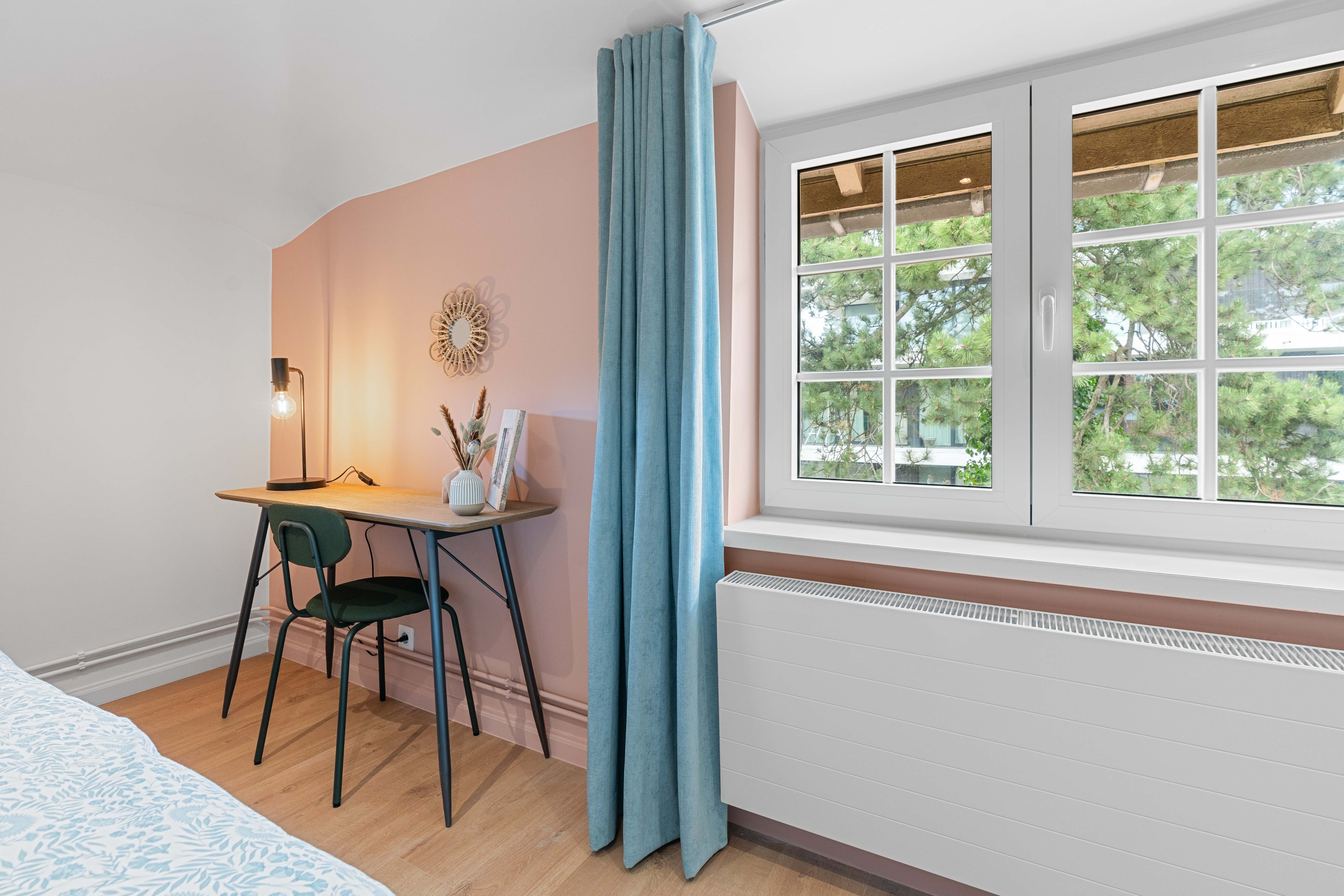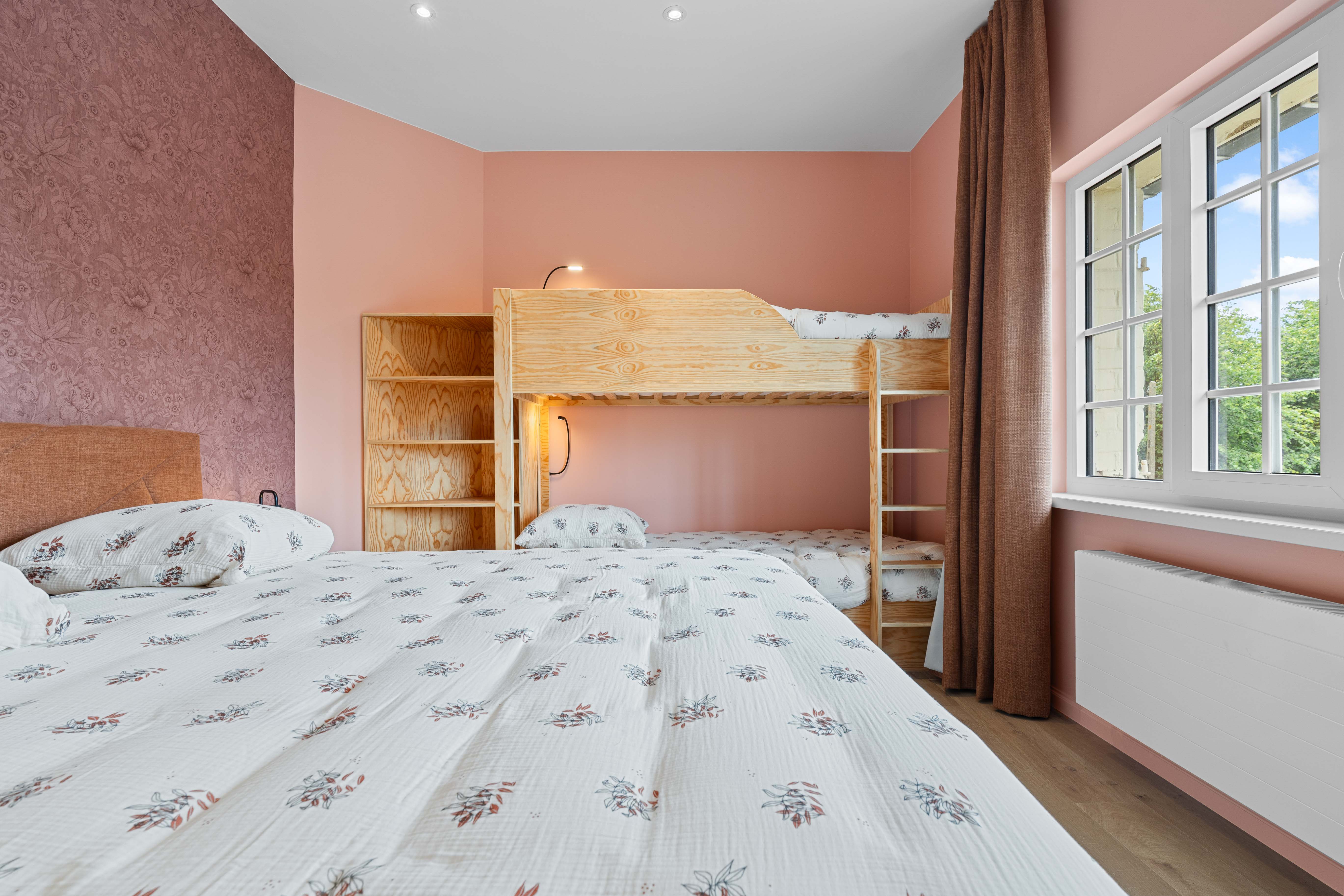 Dankzij deze kleurencombinatie voelt elke slaapkamer niet alleen stijlvol, maar ook luchtig, rustig en uitnodigend aan. Het gebruik van zachte materialen, comfortabele bedden en warme texturen versterkt het huiselijke gevoel en maakt de kamers ideaal om te ontspannen, bij te praten of gewoon even tot jezelf te komen. Of je nu wakker wordt met de ochtendzon die de lichte tinten laat stralen, of ’s avonds de dag afsluit in een gezellige, rustige sfeer, de slaapkamers bieden een perfecte balans tussen comfort en esthetiek. Elke kamer is zo ontworpen dat ze niet alleen functioneel is, maar ook een echte beleving biedt.