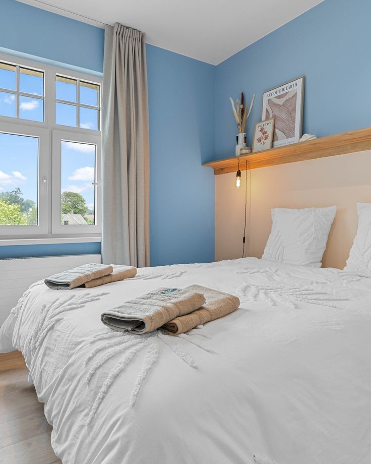 Kies één of twee natuuraccenten: blauw voor frisheid, groen voor rust, terracotta voor warmte.